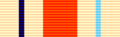 The ribbon is 32 millimeters wide. It has a 4-millimeter black band, a 3-millimeter yellow band, an 18-millimeter blue band, and then the yellow and black bands repeated. The colors tell a story: