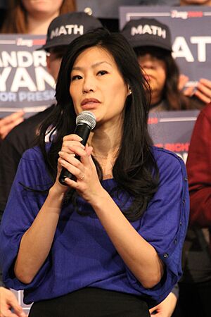 Andrew Yang (born January 13, 1975) is an American businessman, lawyer, and politician. He is also an author and a political commentator. Yang ran for president in 2020 as a Democrat. He also ran for mayor of New York City in 2021. Today, he is a leader of the Forward Party.