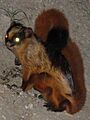 The nominate subspecies of the Bhutan giant flying squirrel, showing the light stripe along its mid-back (a grey-headed giant flying squirrel perched above)