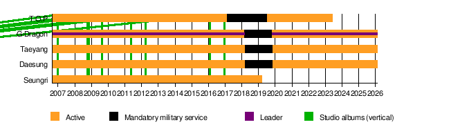 On December 27, 2022, Daesung also ended his contract with YG Entertainment. On May 31, 2023, T.O.P shared that he had "already withdrawn" from the group.