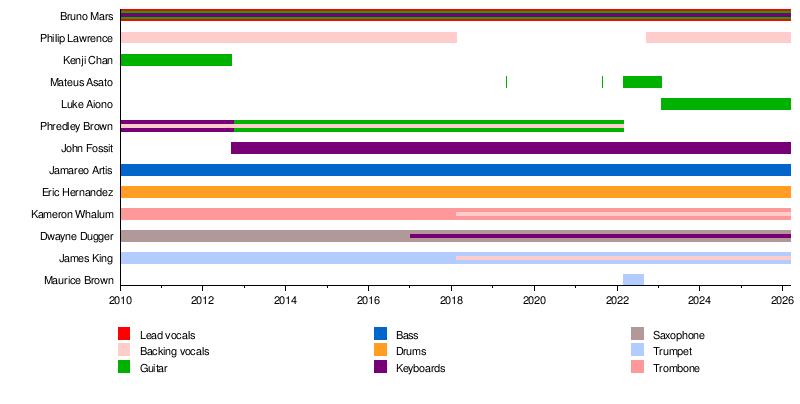- Bruno Mars – lead vocals, guitars, keyboards (2010–present)