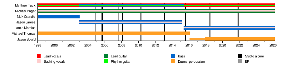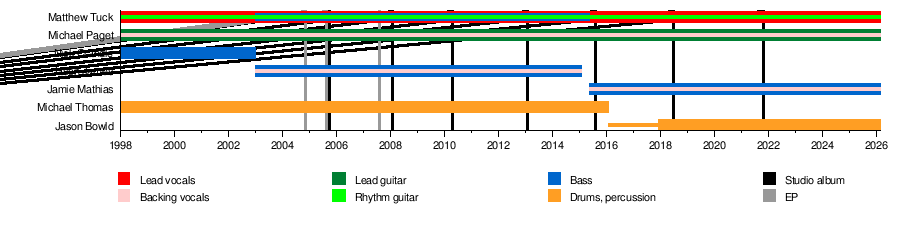 - Matthew "Matt" Tuck – lead vocals, rhythm guitar (1998–present); bass (2003–2015)