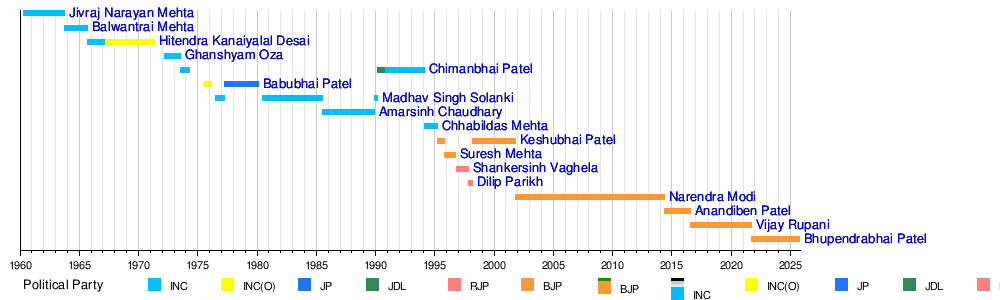 7 | Keshubhai Patel | BJP | 3 years, 216 days | 4 years, 72 days | |