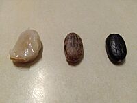To make 1 kilogram (about 2.2 pounds) of chocolate, you need about 300 to 600 cocoa beans. First, the beans are roasted, cracked open, and their shells are removed. What's left are pieces called nibs. These nibs are ground into a thick paste known as chocolate liquor or cocoa paste.