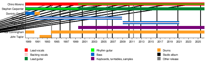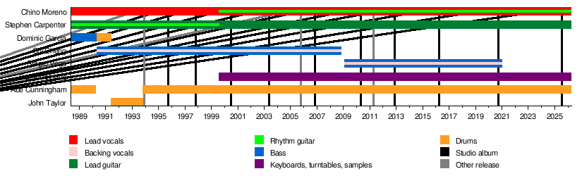 - Chino Moreno – lead vocals (1988–present); rhythm guitar (1999–present)