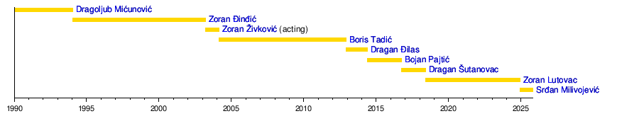 Since then, DS has had several leaders, including Dragan Đilas, Bojan Pajtić, Dragan Šutanovac, and Zoran Lutovac. The party has joined different groups of opposition parties. In 2020, DS boycotted the parliamentary election, which caused some disagreements within the party. However, they returned to the National Assembly in the 2022 election. In late 2024, Srđan Milivojević became the new leader.