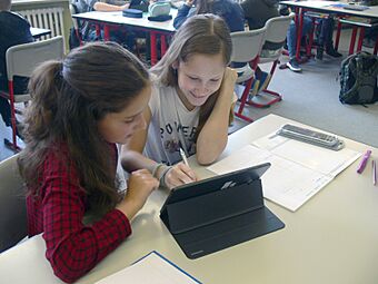 In the United States, almost all schools had high-speed Internet by 2019. This allows students to use digital tools for lessons.