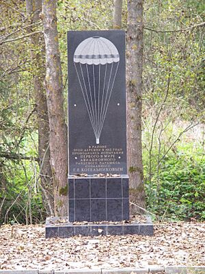 He also created some of the first parachutes for carrying supplies. In 1930, the sport of parachuting began in Russia. The Soviet Airborne Troops were also created that year. This was the first group of paratroopers in history. Gleb's work was key to these developments.
