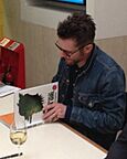 With Gorillaz, Damon Albarn explored many musical styles like hip hop, electronic, and world music. Their first album, Gorillaz, came out in 2001 and was a huge hit, especially with the song "Clint Eastwood". Their second album, Demon Days (2005), was even more successful, featuring popular songs like "Feel Good Inc." and "Dare".