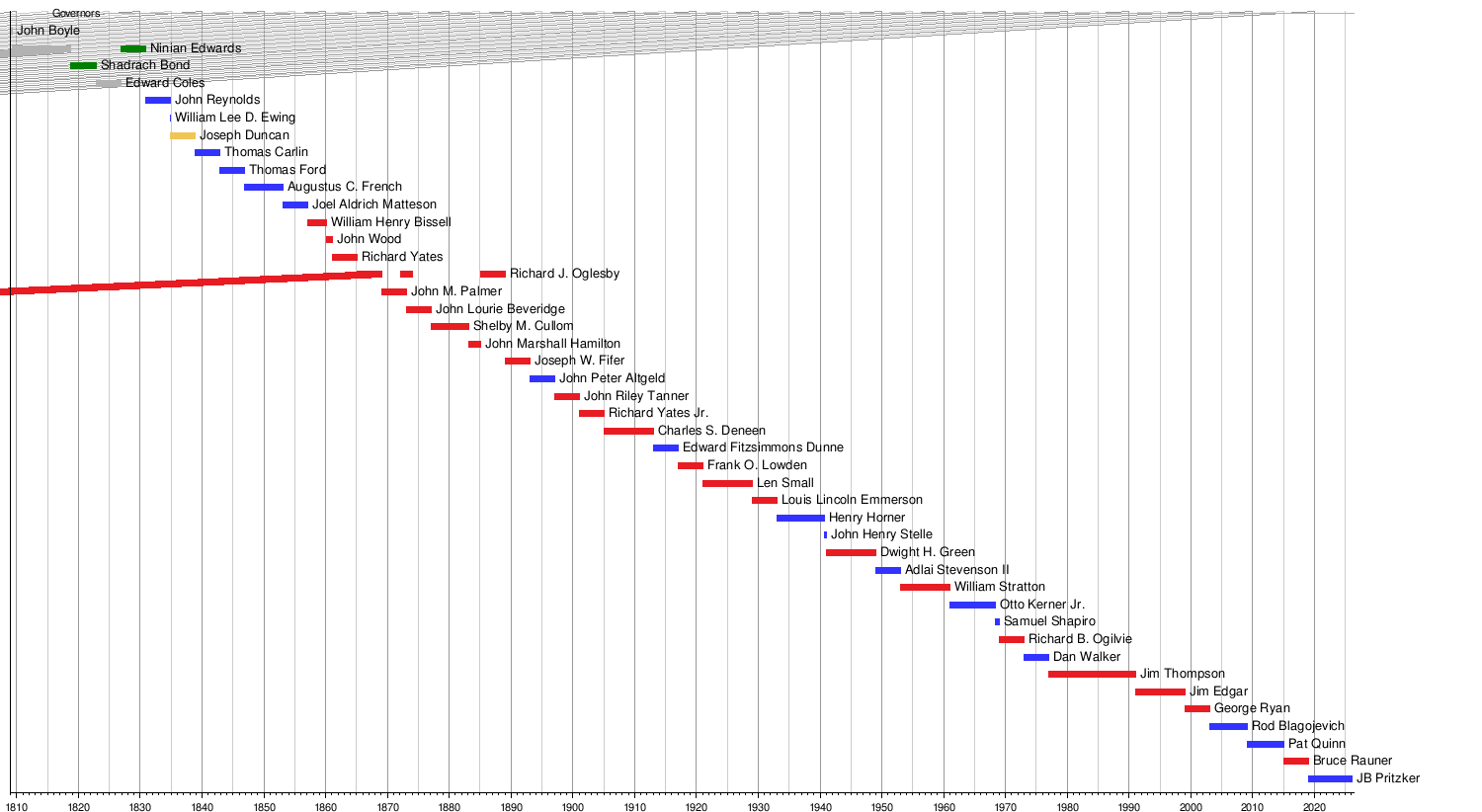 This timeline shows when different people served as governor of Illinois.