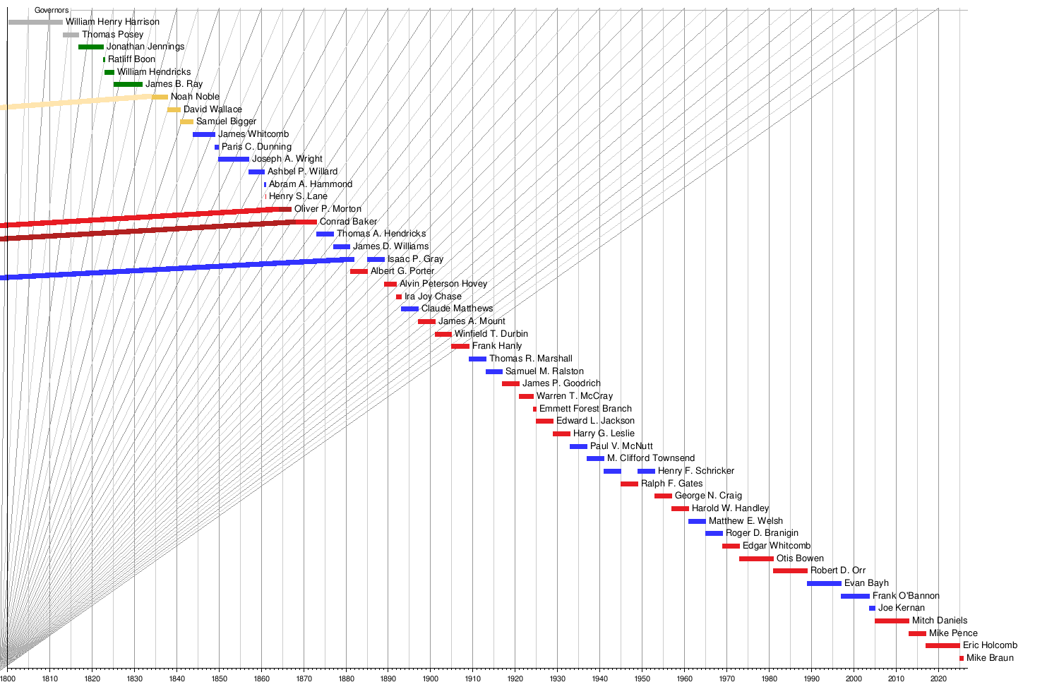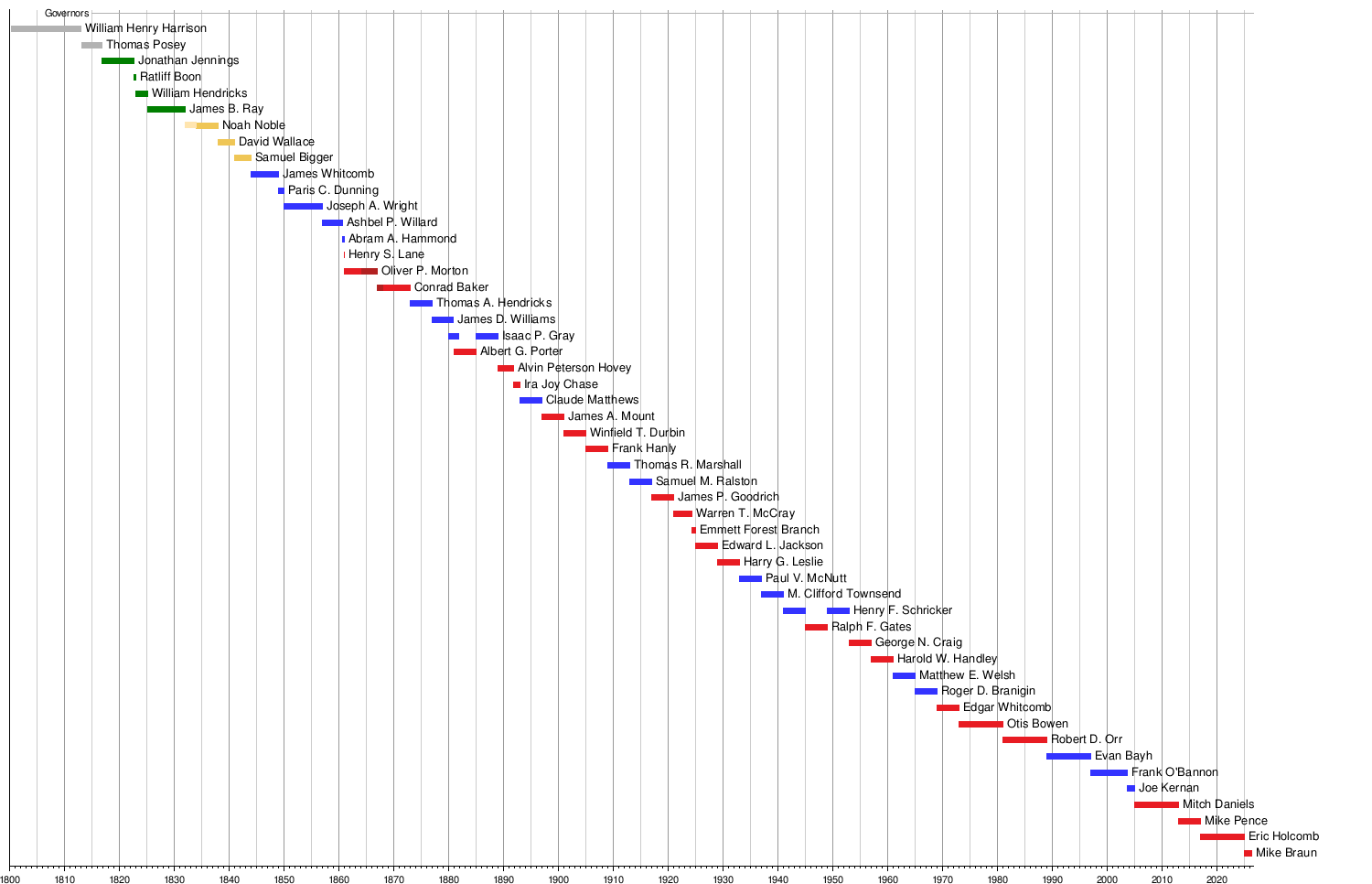 There have been 51 governors of Indiana. Many have been from the Republican Party (23) and the Democratic Party (21). Four governors have died while in office. Seven have resigned. Ten lieutenant governors have become governor. Only one Senate president pro tempore, James B. Ray, has become governor.