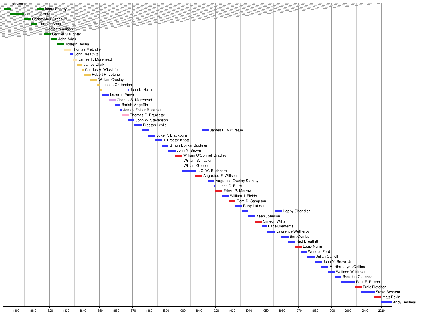 Four people have served two terms that were not back-to-back. Four others have served two terms in a row. The current governor, Andy Beshear, was re-elected for his second term on November 7, 2023. Kentucky is one of only five U.S. states that hold governor elections in "off-years." These are years when there is no presidential election.