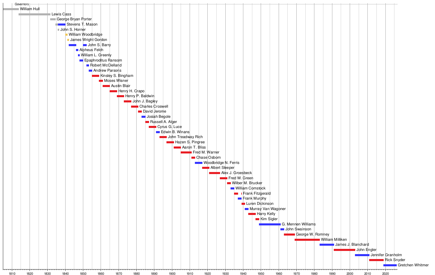 From when Michigan became a state until 1966, governors were elected for two-year terms. Elections happen in November. The new governor starts their job the following January. This is unless something unexpected happens, like the governor passing away or resigning.