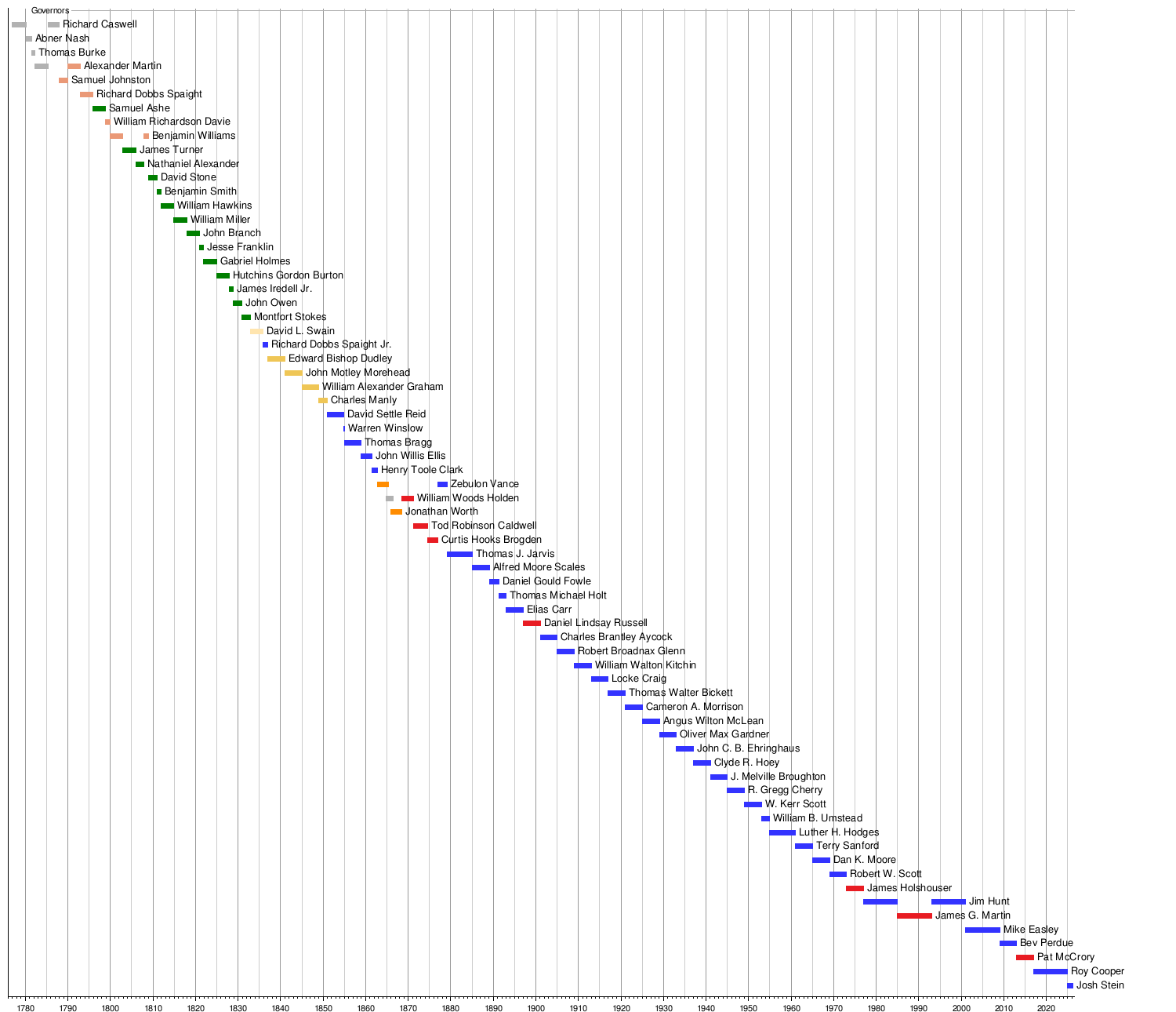 | Timeline of North Carolina governors |