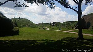 The area around Hellevoetsluis has been settled for a very long time. People lived here even before the Romans arrived. The name "Hellevoetsluis" comes from an old river called the "Helle". The word "voet" means "foot" in Dutch, and "sluis" means "lock". So, it was a lock at the foot of the Helle river.