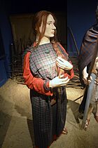 The history of clothing and textiles explores how clothes and fabrics have changed throughout human history. Our clothes show what materials and tools people had in different times and places. They also tell us a lot about a society's customs and culture.