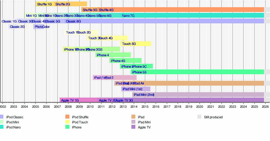 Apple TV#3rd generation Apple TV#2nd generation Apple TV#1st generation iPad Mini (2nd generation) iPad Mini (1st generation) iPad Air iPad (4th generation) iPad (3rd generation) iPad 2 iPad (1st generation) iPhone 5C iPhone 5S iPhone 5 iPhone 4S iPhone 4 iPhone 3GS iPhone 3G iPhone (1st generation) iPod Touch (5th generation) iPod Touch#4th generation iPod Touch#3rd generation iPod Touch#2nd generation iPod Touch#1st generation iPod Classic#6th generation iPod Classic#5th generation iPod Classic#iPod With Color Display) iPod Photo iPod Classic#4th generation iPod Classic#3rd generation iPod Classic#2nd generation iPod Classic#1st generation iPod Nano#7th generation iPod Nano#6th generation iPod Nano#5th generation iPod Nano#4th generation iPod Nano#3rd generation iPod Nano#2nd generation iPod Nano#1st generation iPod Mini iPod Mini iPod Shuffle#4th generation iPod Shuffle#3rd generation iPod Shuffle#2nd generation iPod Shuffle#1st generation