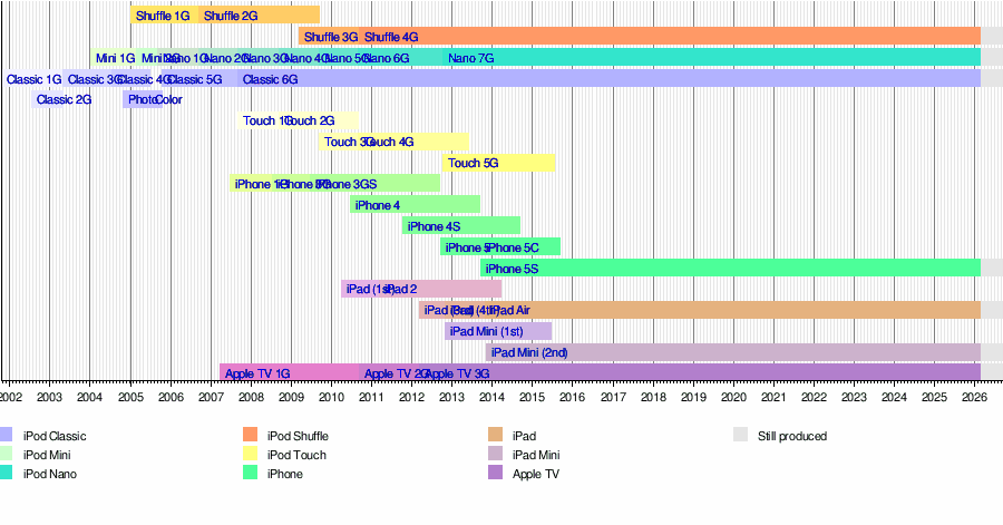 Sources: Apple press release library, Mactracker Apple Inc. model database