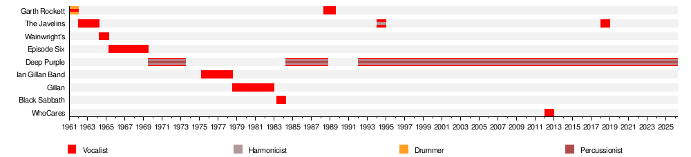 For one year, he was the singer for the famous band Black Sabbath. In 1984, Deep Purple got back together, and Gillan rejoined them. He left again in 1989 but returned in 1993. He has been Deep Purple's lead singer ever since.