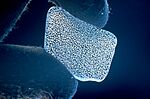 As the ice gets even deeper, the pressure becomes enormous. Around 1500 meters down, the ice crystals actually change their shape. This allows air molecules to move into the crystals, and the bubbles disappear. The ice then becomes clearer.