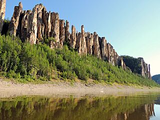Description: Ленские столбы — геологическое образование и одноимённый природный парк в России, на берегу реки Лены. Находится в Хангаласском улусе Якутии в 104 км от города Покровска.