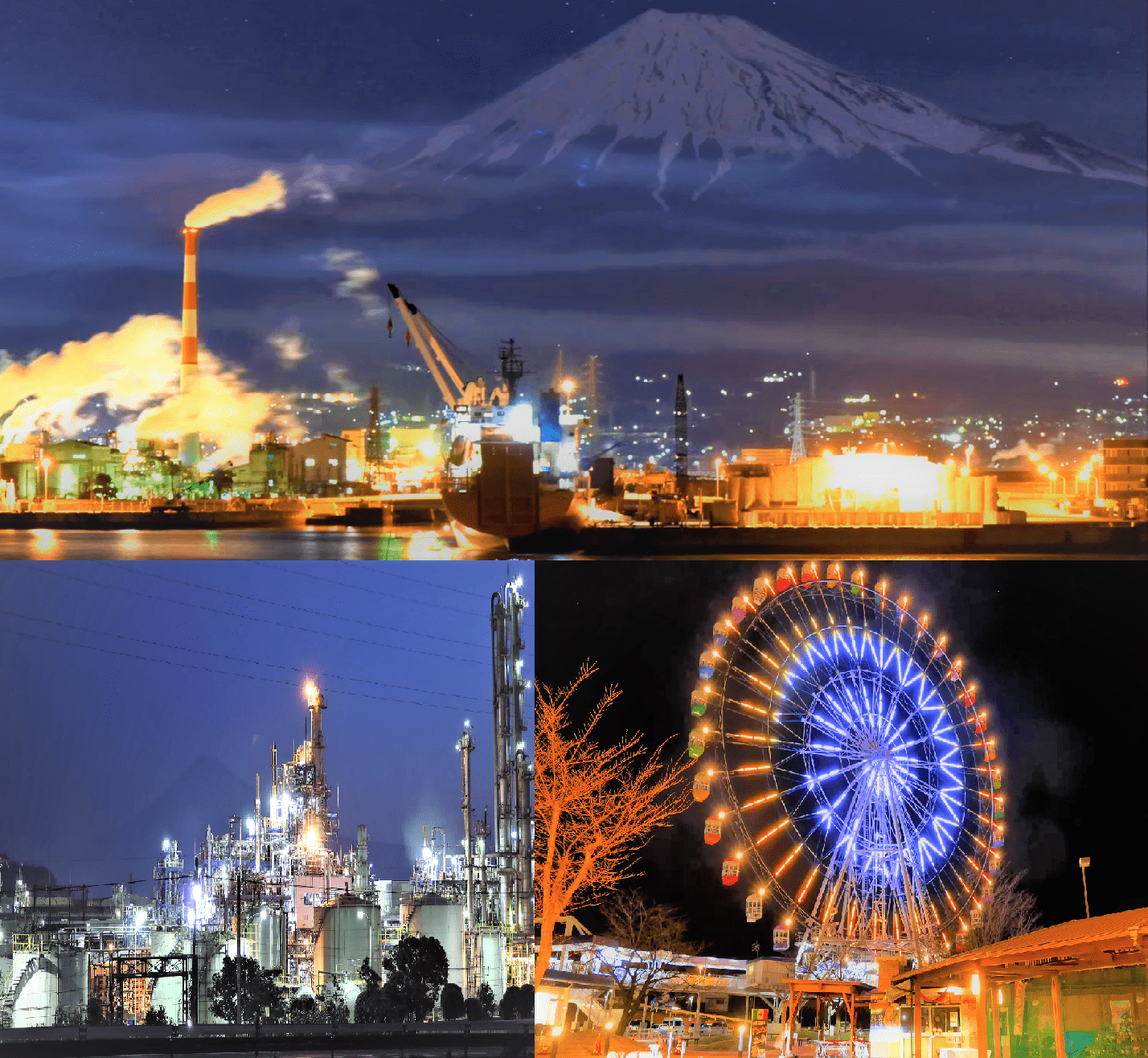 Description: Mt. Fuji and Tagonoura Port, factories, Fuji Sky View