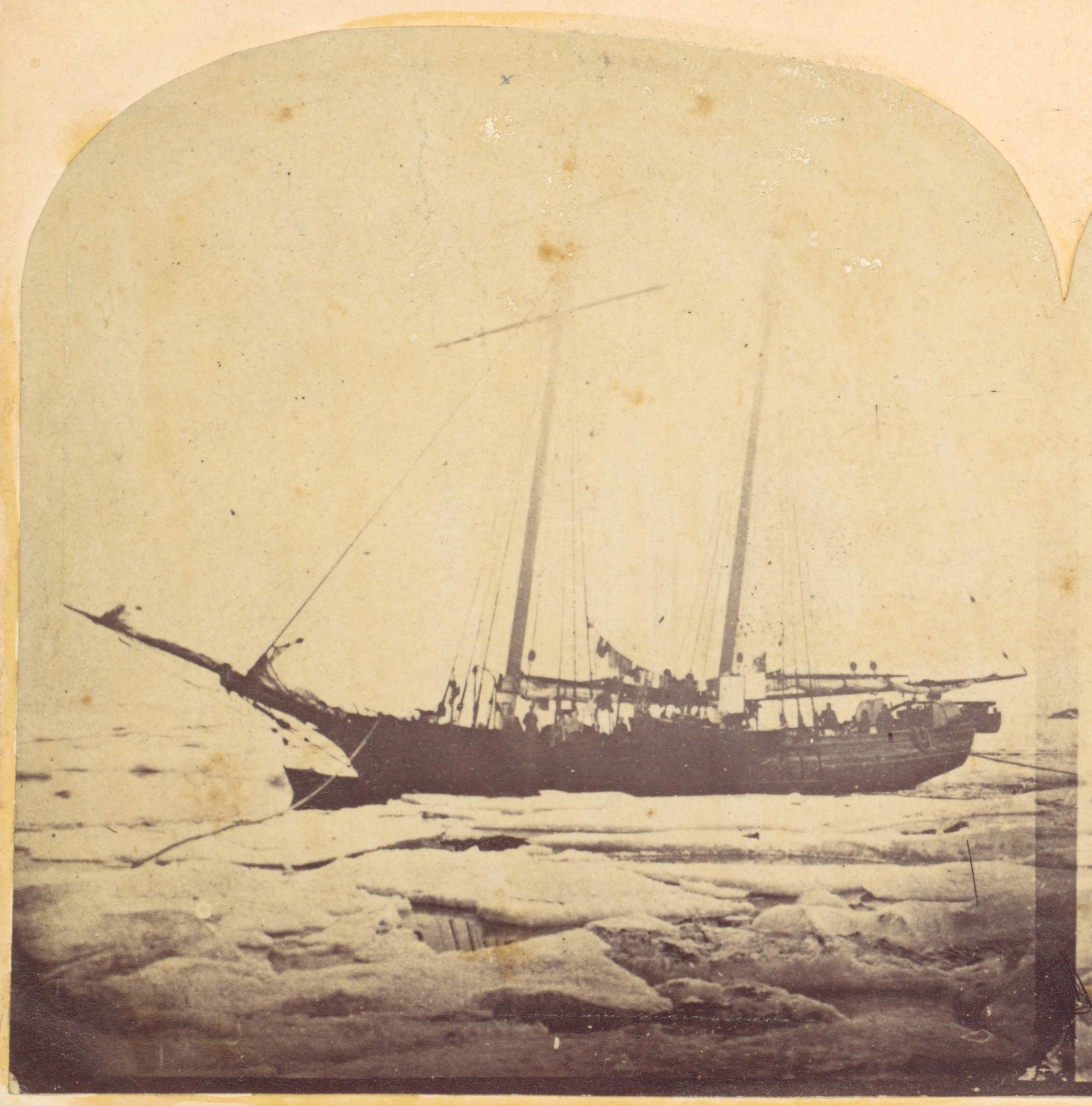 Description: Stereograph; Photographs. Dr. Isaac Israel Hayes. Arctic Expedition 1860. Greenland. Schooner "Spring Hill"[1] The Spring Hill is a fore-and-aft schooner of about 133 tons burthen. Built 1853. The vessel will take in about 50 tons of coal, and the ordinary provisions and ship stores for a two years voyage[2] Ship renamed theUnited States[3]