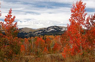 Description: Fall colors in aspen (Populus tremuloides) in the Bear River Range, Idaho, United States
