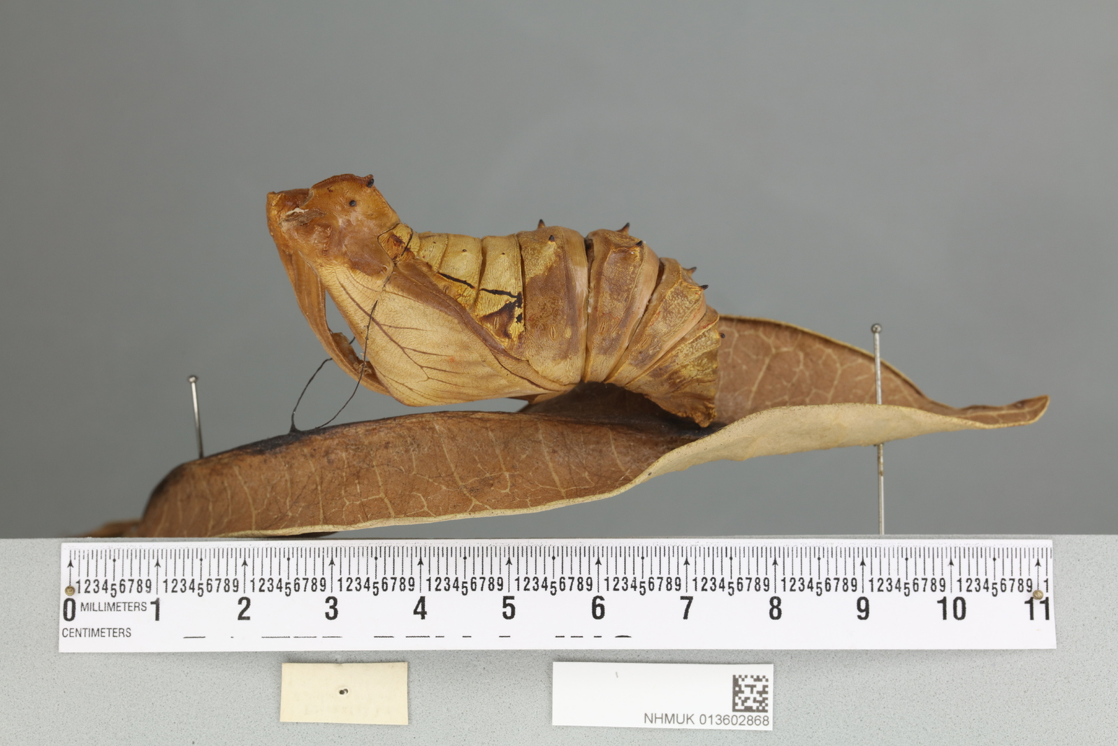 Title: 013602868 Ornithoptera priamus poseidon lateral pupa