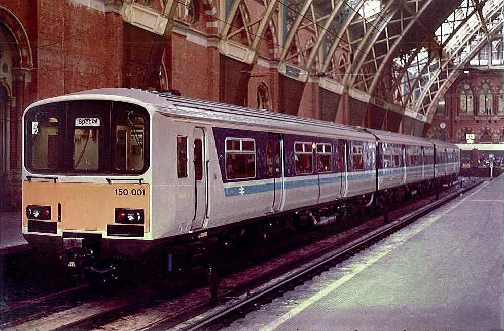 Description: 150001 at St Pancras after a publicity run from Derby. This unit is now operated by First Great Western on services between Reading and Basingstoke.