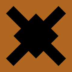 Description: Formation badge of the 18th Infantry Division, showing the black "windmill sails" on an orange field. Copied (by inspection) from IWM jpg.
