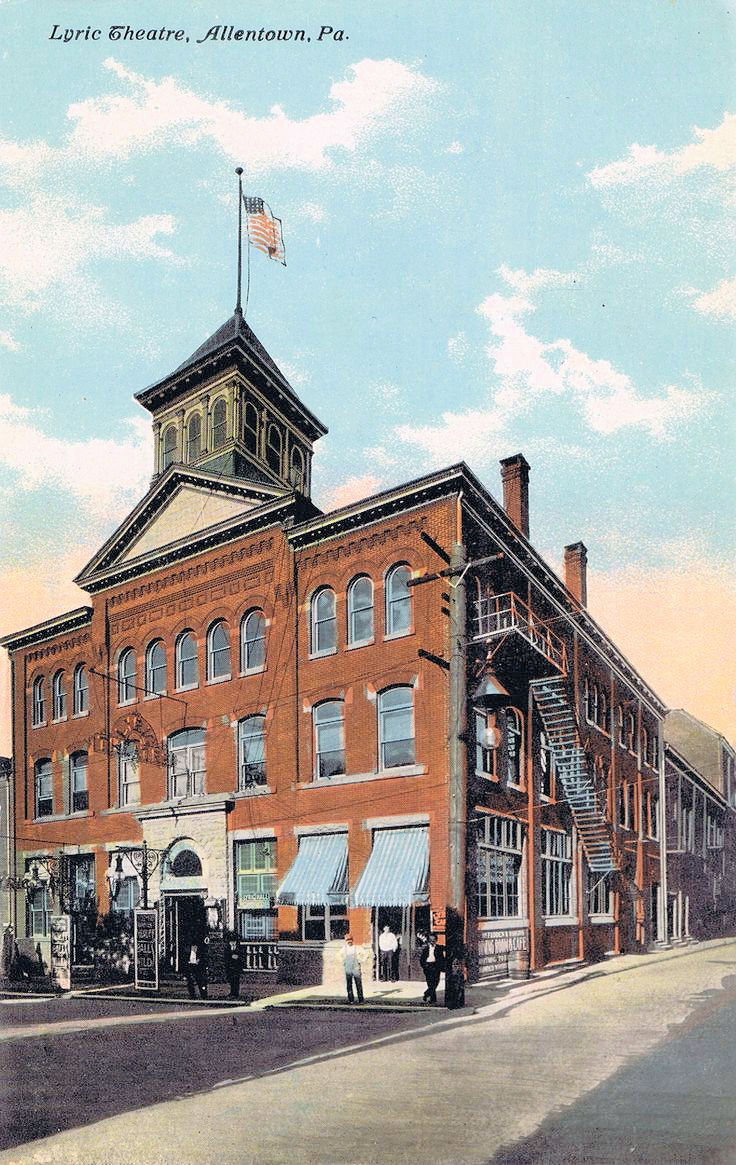 Description: 1905 postcard photo of the Lyric Theater, now called Miller Symphony Hall. Located at the southeast corner of North Sixth and Court Streets, in 1959, the building was purchased by the Allentown Symphony for use as their permanent home. The venue is listed on the National Register of Historic Places.