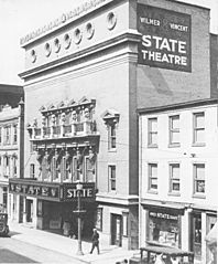 Description: 1922 State Theater, 6th and Linden Streets Originally opened as the Orpheum Theater in 1906. The Orpheum was the first major vaudeville theater in Allentown (Capacity: 1,421 seats). Live variety shows, it mixed jugglers, song-and-dance teams and acrobats, comedians and other live performers. Allentown was a tryout venue for vaudeville acts and those who did well went to major cities such as Philadelphia, New York and Boston. Famous performers such as Eddie Cantor, Fred and Adele Astaire, Jack Benny, Bing Crosby, Buster Keaton and Will Rogers all played at the Orpheum. By 1920, vaudeville had been taken over by silent films and in 1924 the Orpheum was converted to The State movie theater. It was the third largest theater in Allentown. Converted to sound films in the early 1930s, closed in December 1953 due to declining attendance caused by Television. Purchased for $50,000 by Park and Shop Inc. and torn down in April 1954 to make way for a parking lot