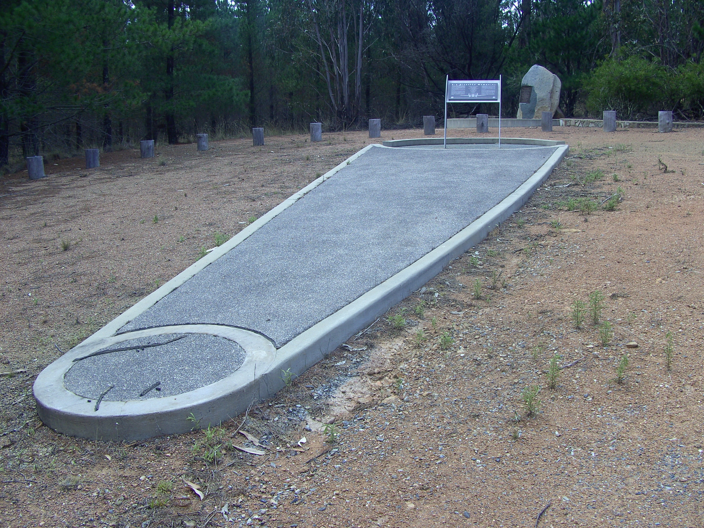 Description: 1940 Canberra air disaster memorial - look along the 'wing'