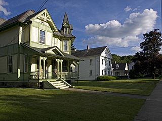 Description: Odd side of Summer Street, Adams, MA. The white house is #19.