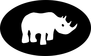 Description: A white standing rhinoceros on a black oval (first pattern). The heavily armoured animal being used to symbolize an armoured formation.