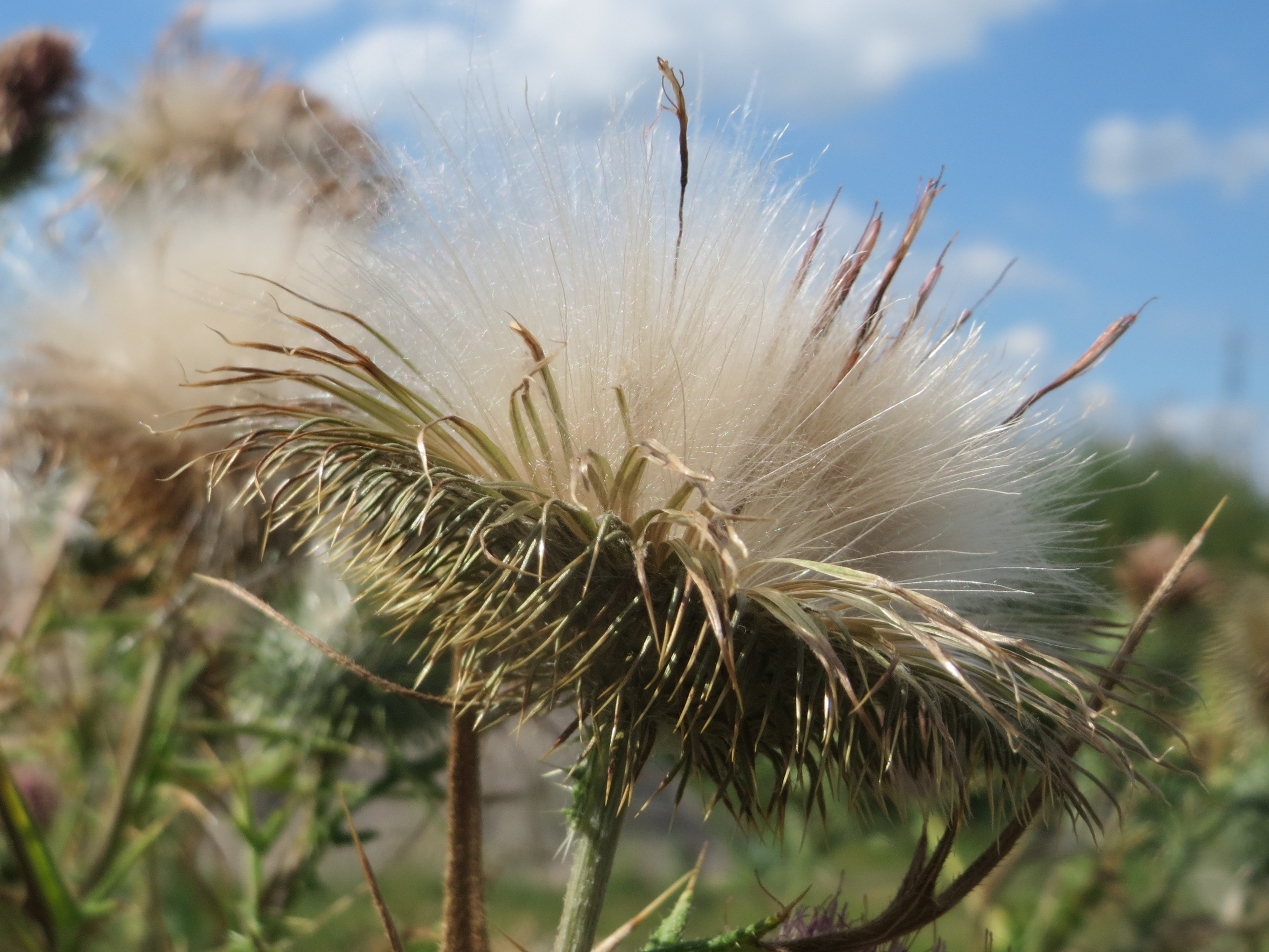 Description: Samenstand der Gewöhnlichen Kratzdistel (Cirsium vulgare) auf einer Ruderalfläche in Hockenheim-Talhaus