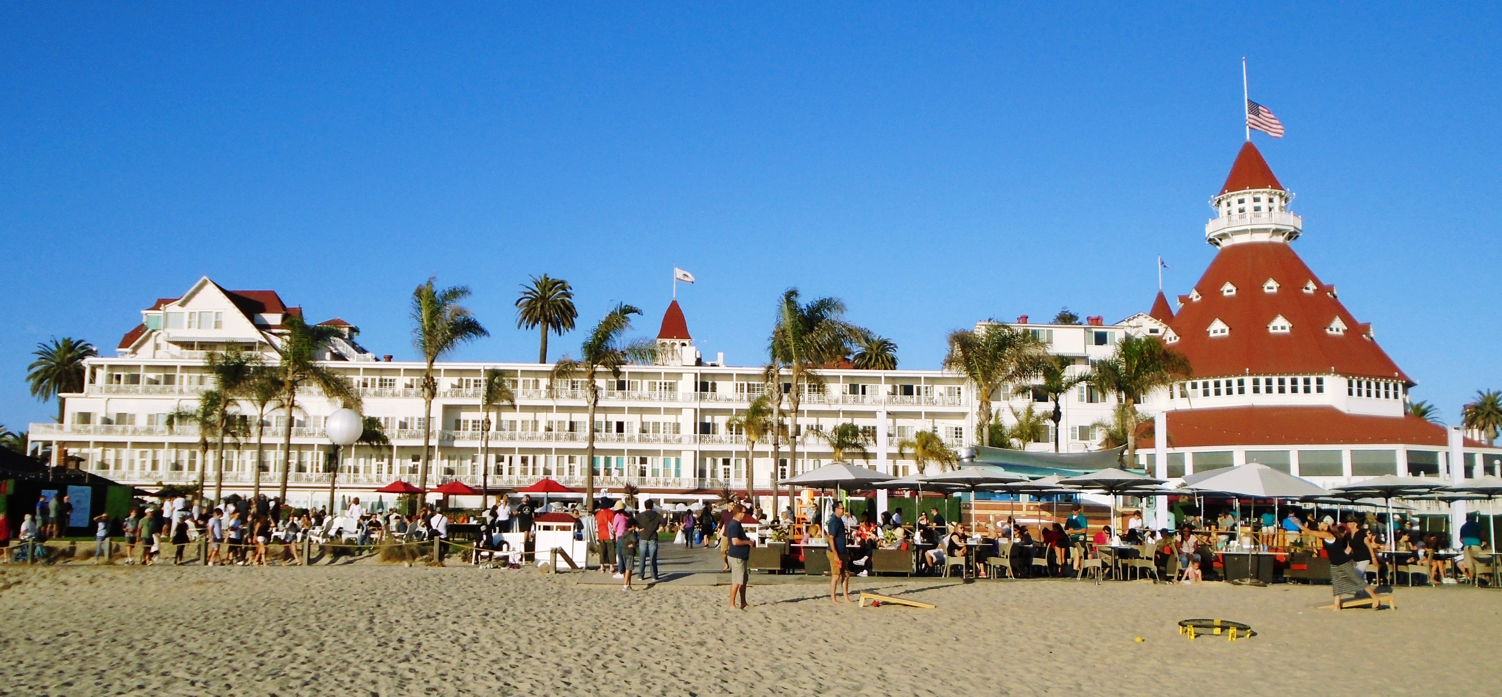 Description: The Hotel del Coronado from Coronado Beach in Coronado, California.