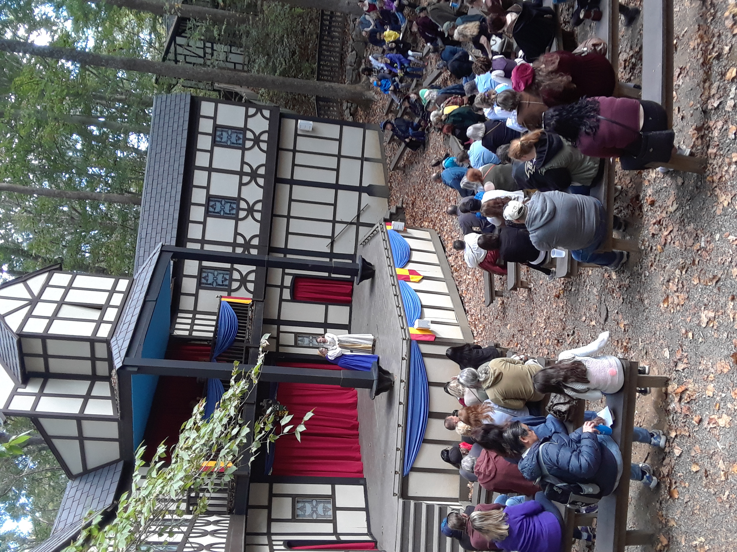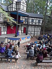 Description: Visitors observe a Shakespearean play at the Maryland Renaissance Festival