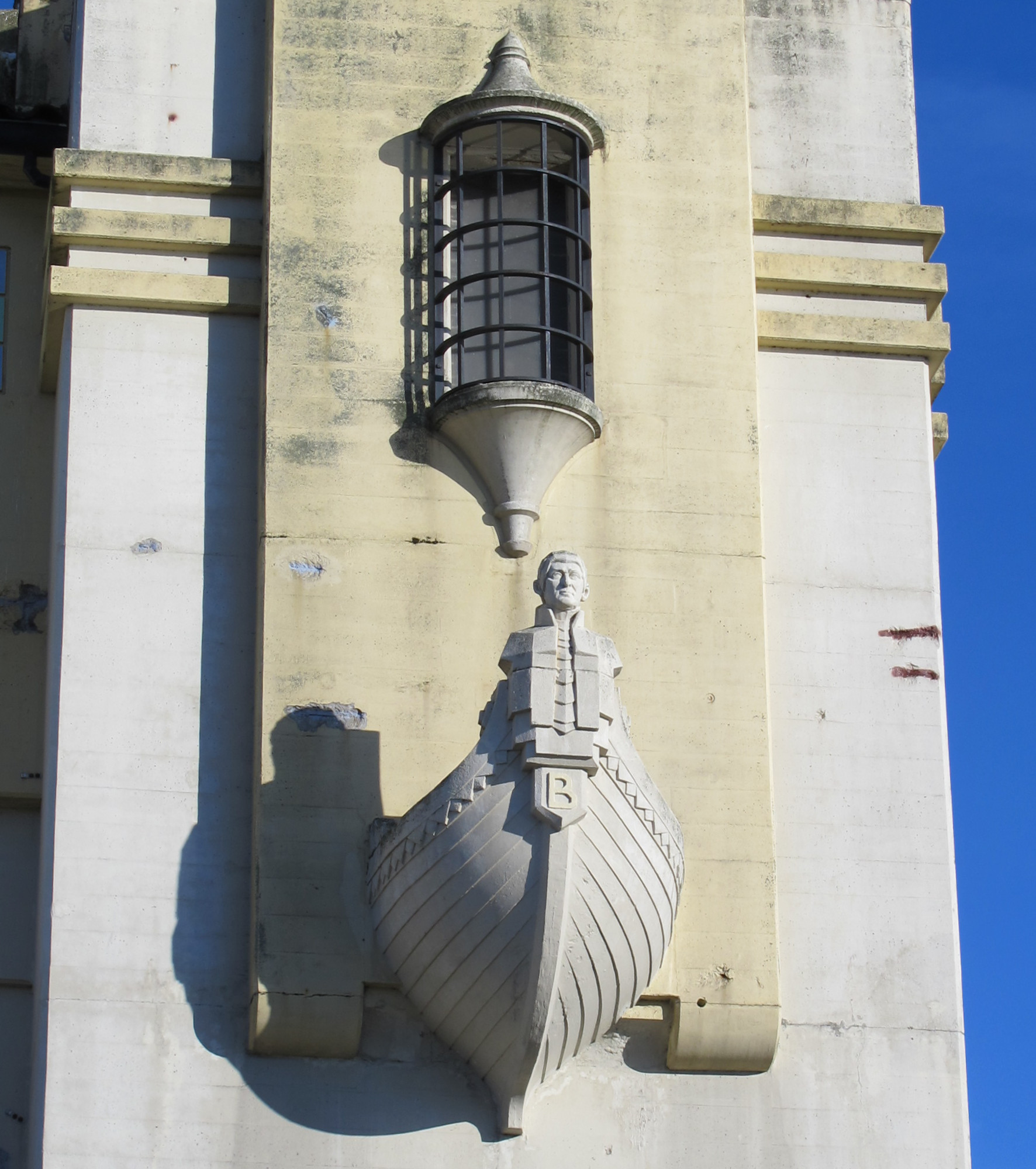 Description: Figurehead sculpture of Sir Harry Burrard-Neale by Charles Marega. Letter 'B' on prow.