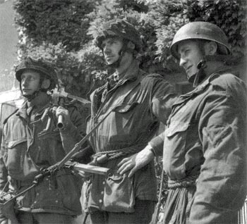 Description: Men of D Company Oxfordshire and Buckinghamshire Light Infantry after capturing "Pegasus Bridge" (the Caen Canal Bridge at Benouville), France.