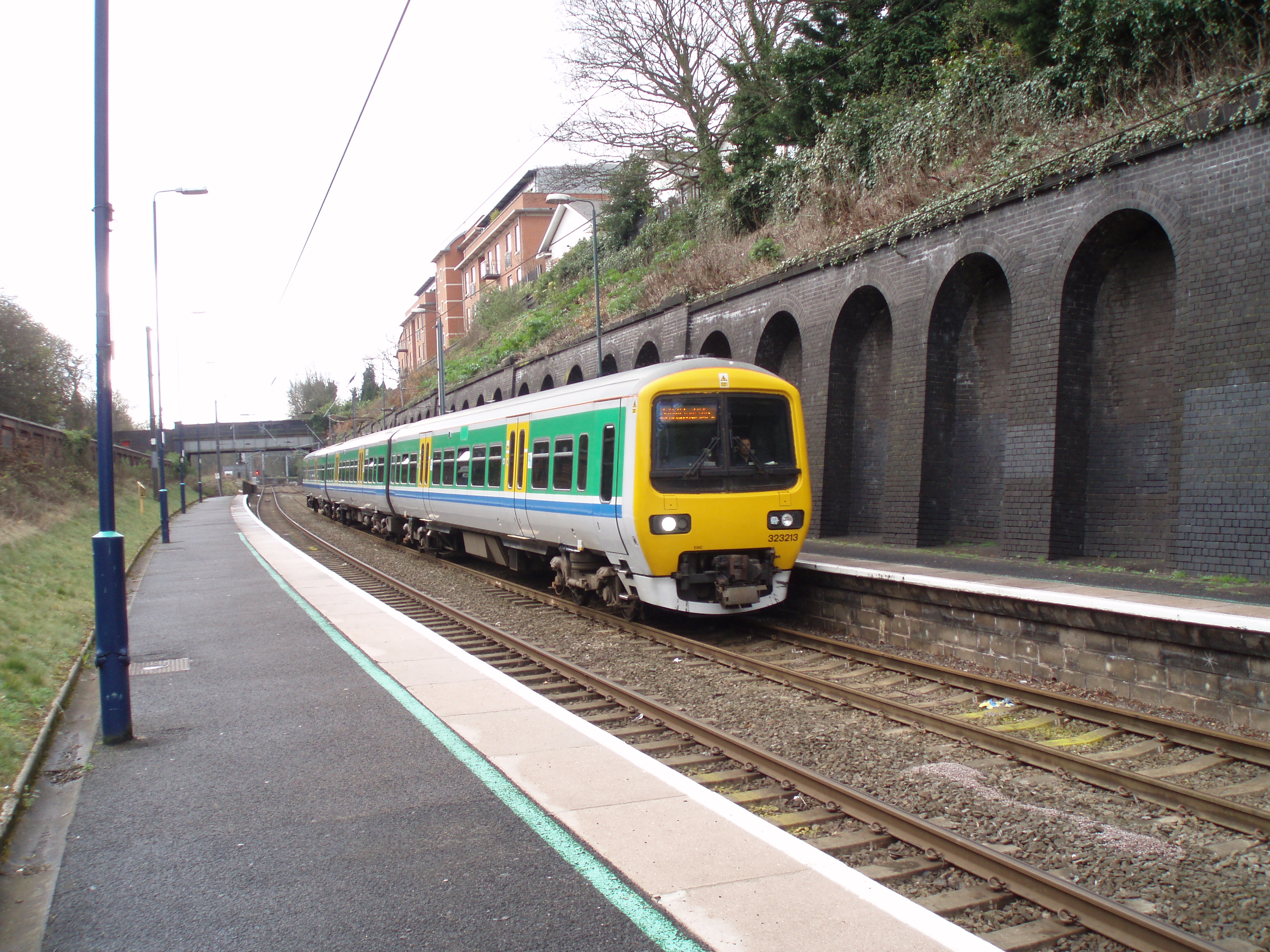 Description: a class 323 EMU arriving in to Five Ways