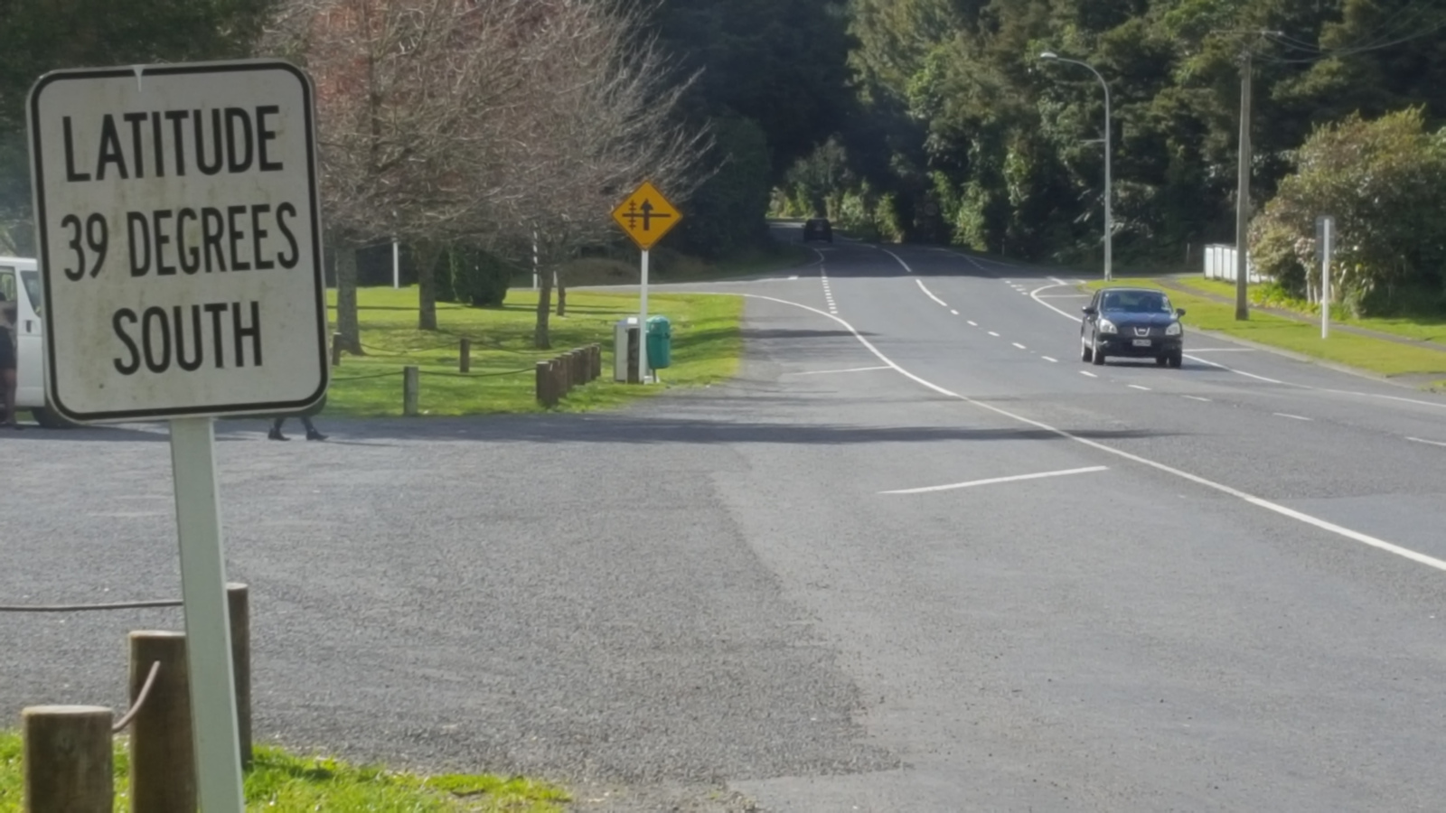Title: 39 degrees south sign in Owhango, looking north, September 2019