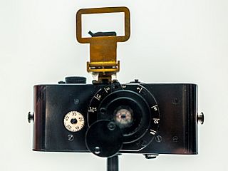 Description: A replica of the first Leica camera, the Ur-Leica, developed by Oskar Barnack. This replica is on display at the company's headquarters in Wetzlar, Germany.