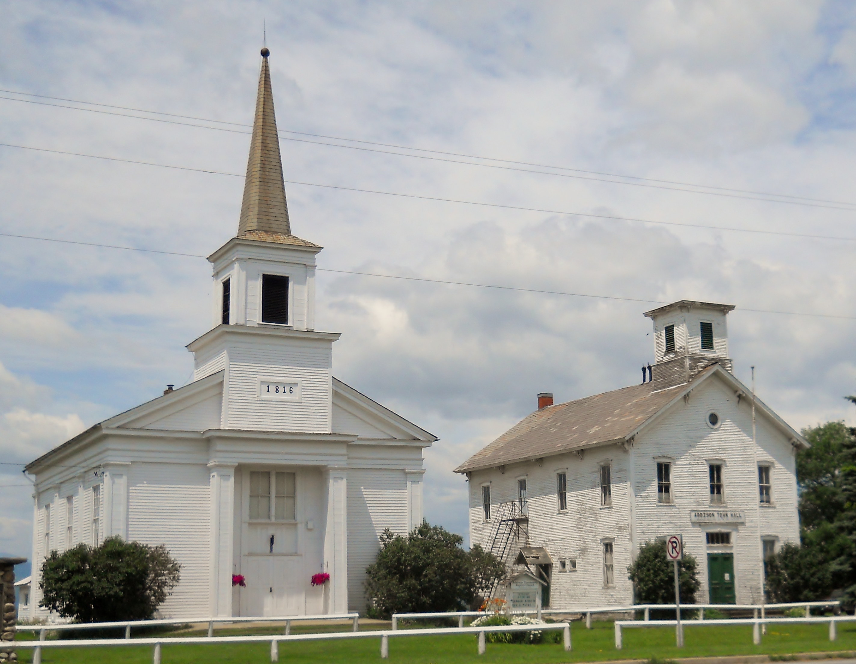 Description: This is the Addison Community Baptist Church and the Addison Town Hall at the village center of Addison, Vermont (Addison Four Corners). It is at the busy intersection of Vermont Route 17 and Vermont Route 22A.