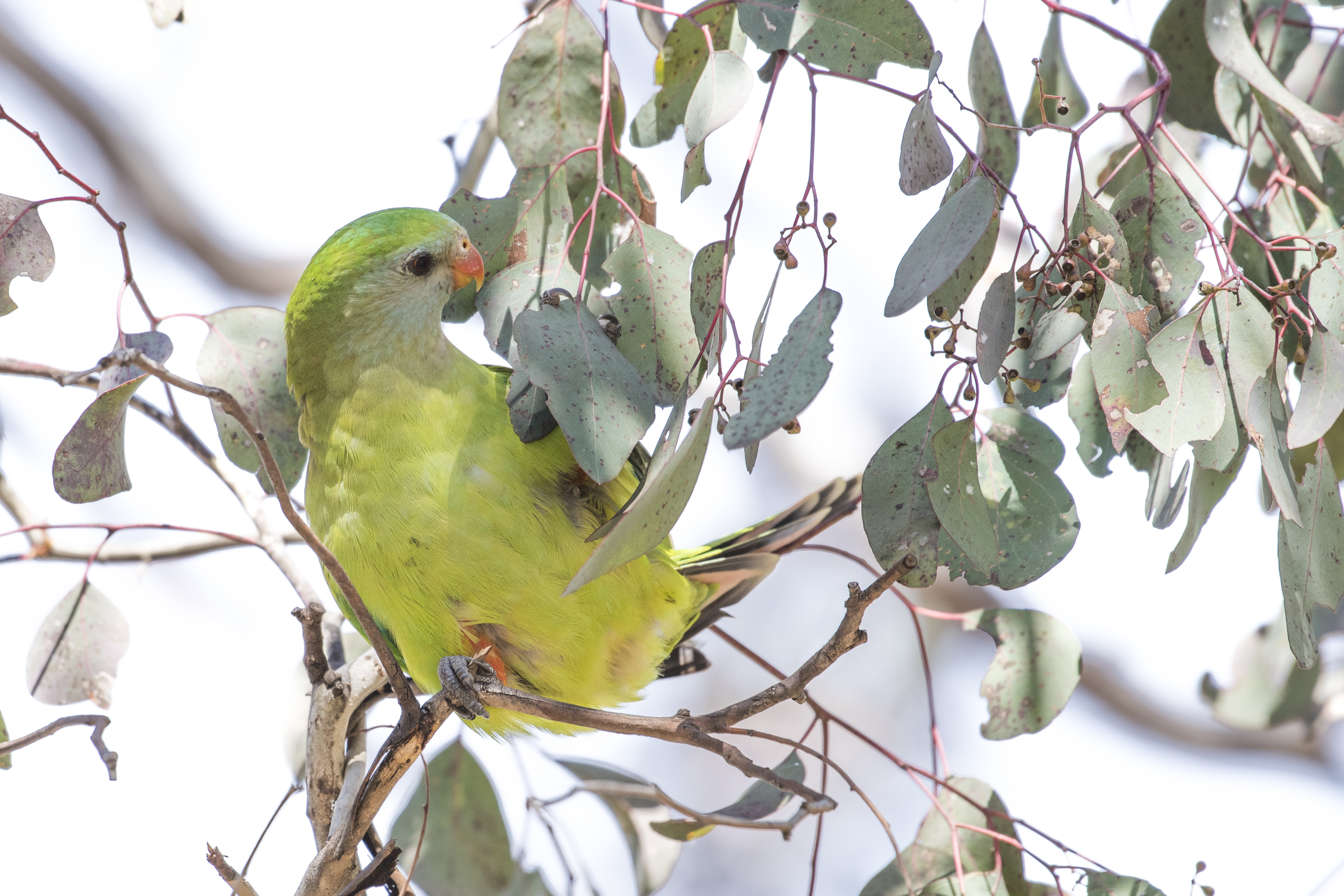 Description: Adult female superb parrot in Canberra