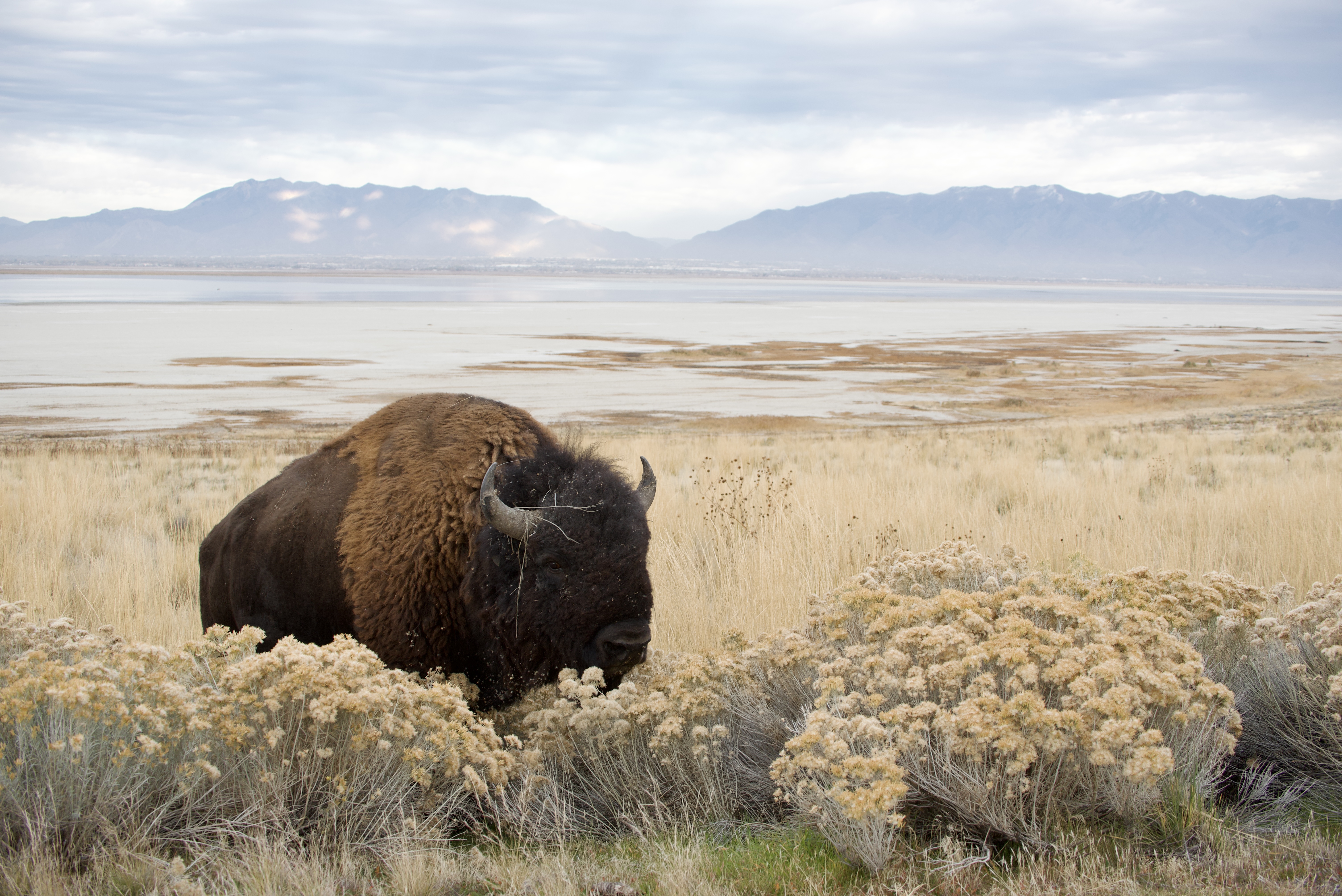 Description: American Bison on the East side of Antelope Island in November 2023.