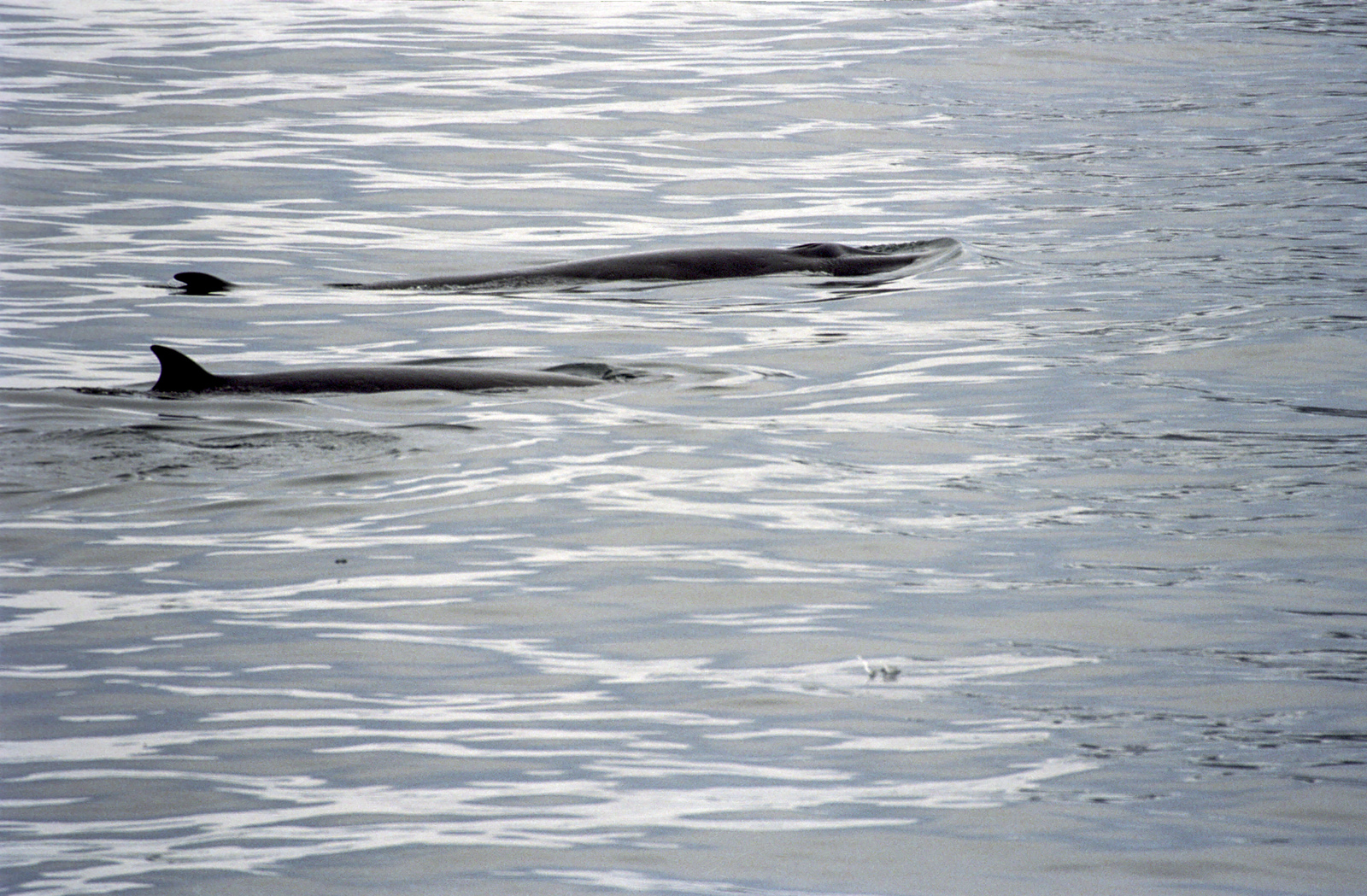 Description: Two antarctic minke whales (Balaenoptera bonaerensis) in the Antarctic.
