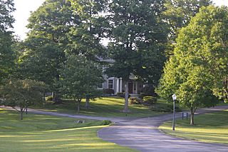 Description: Roadside view of the Arthur P. Stitzel House, located at 9707 Shelbyville Road (U.S. Route 60) in Louisville, Kentucky, United States. Built in 1922, it is listed on the National Register of Historic Places.