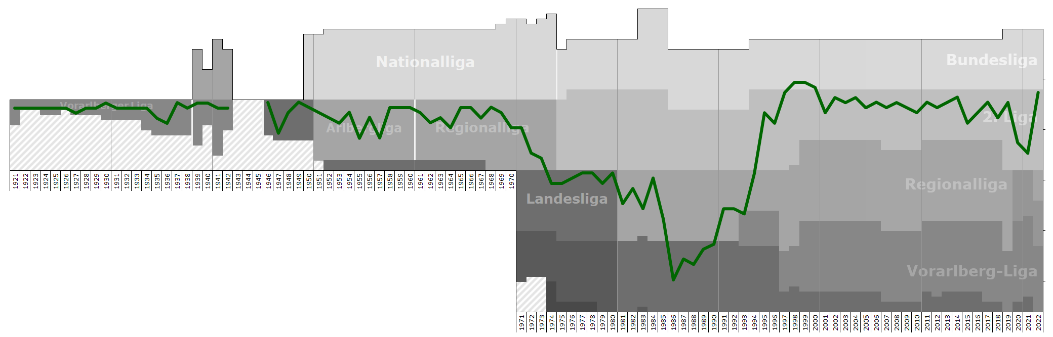 Description: Chart of end-season table positions of Austria Lustenau in the Austrian football league system. Data source: RSSSF, soccerway.com, regiowiki.at, vfv.at, wikipedia